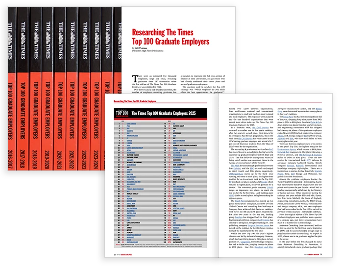 Each year, The Times Top 100 Graduate Employers promotes the country’s top graduate employers to more than a quarter of a million university students and graduates across the UK.